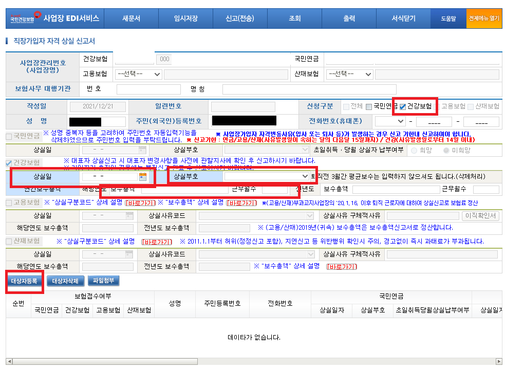 이번에는 건강보험 edi 서비스를 이용하여 일용직 가입자 자격상실 처리를 하겠습니다.