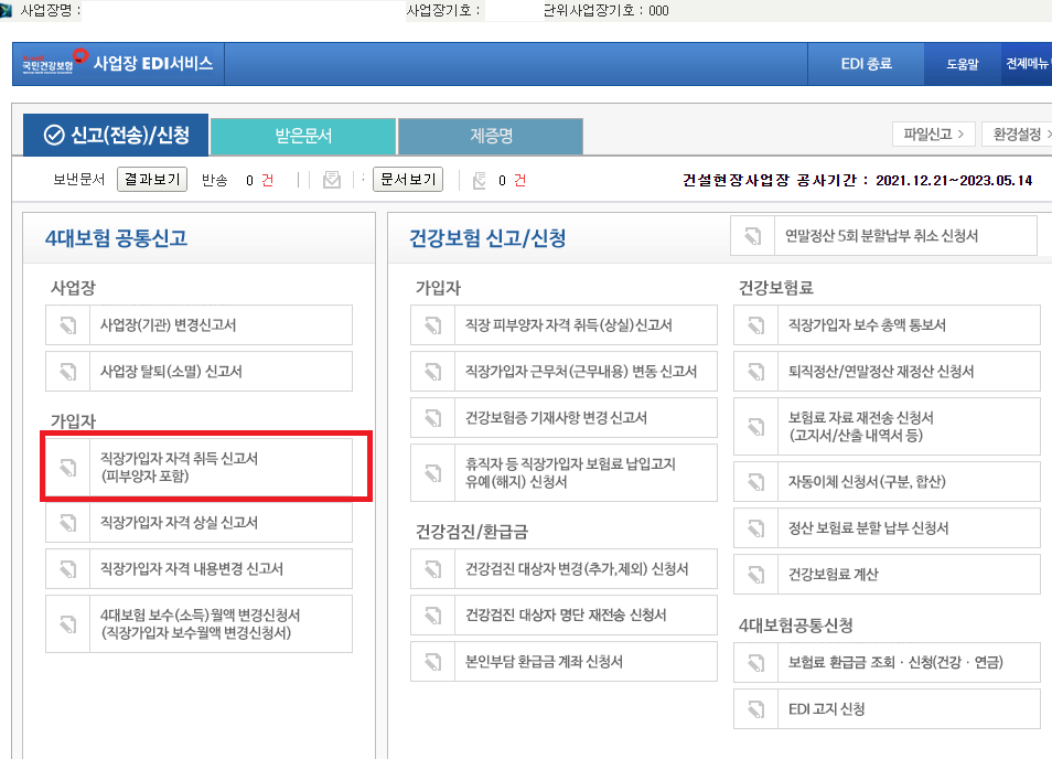저번 포스팅에는 현장에 가입되어있는 일용직 건강보험 상실신고하는 방법을 알아보았는데