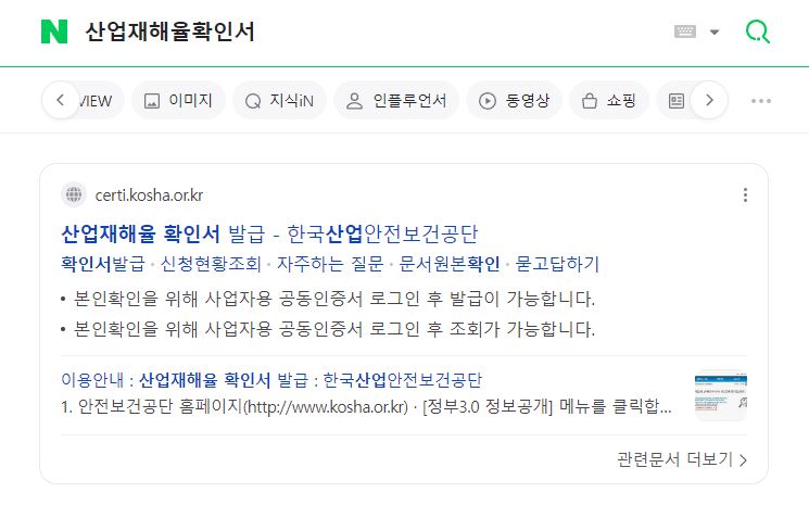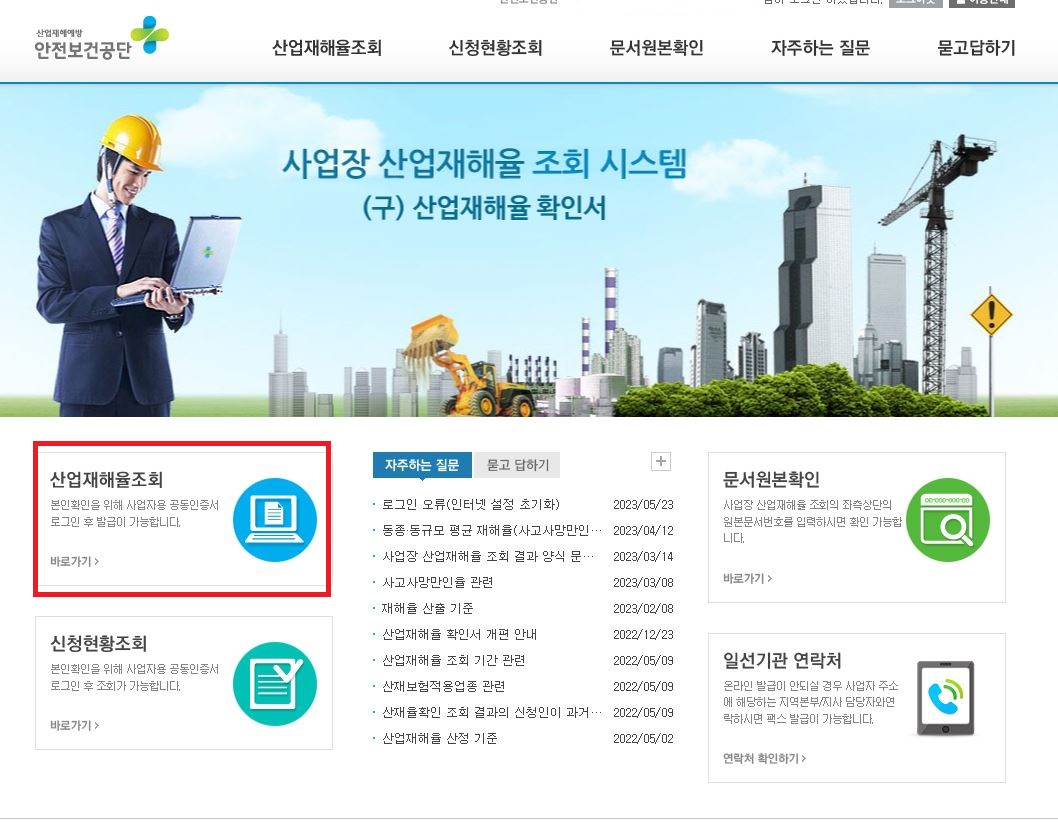 산업재해율 확인서 발급 - 한국산업안전보건공단 (kosha.or.kr)