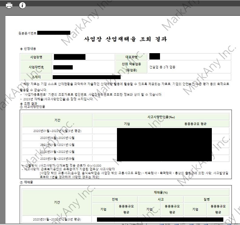 산업재해율 확인서 발급 - 한국산업안전보건공단