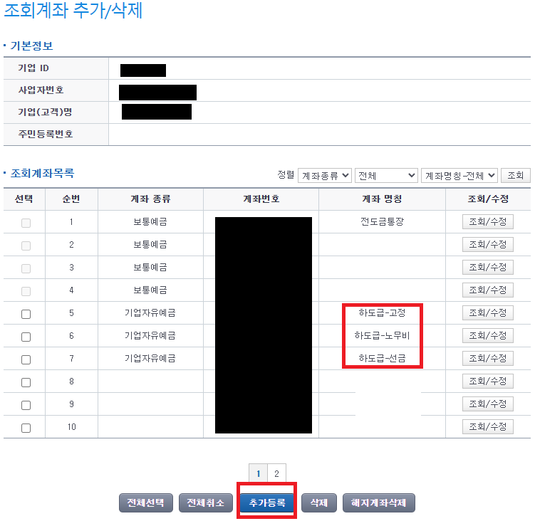 아니 하도급통장 만들었으면 인터넷뱅킹에서 자동으로 나와야지..왜 번거롭게 수동으로 추가해야하는지 모를일이에요.