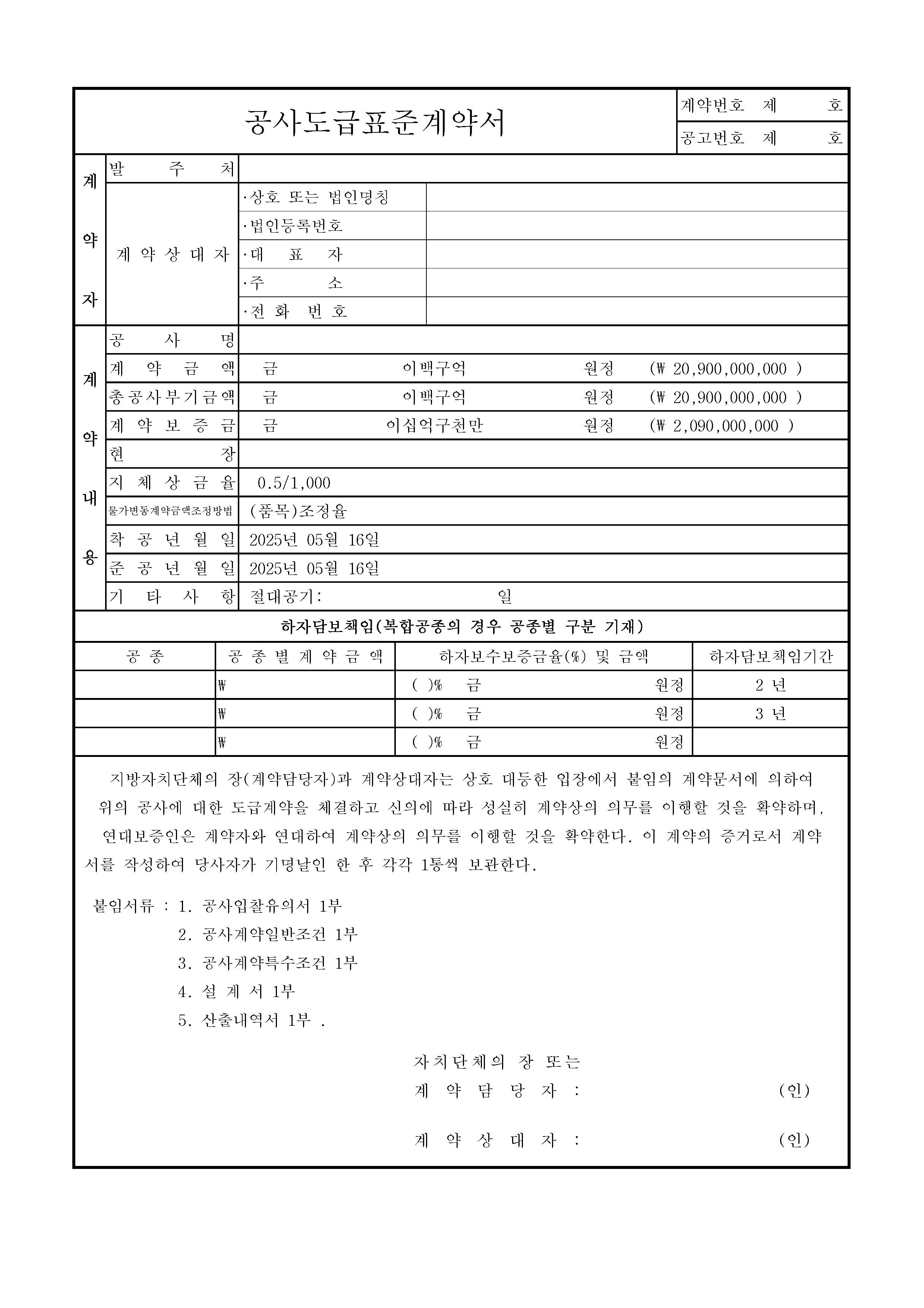 그래서 공사계약할때 공사계약서는 2부(발주처용.계약자용 각각1부씩보관)이고, 그 외 계약서류는 1부(발주처용)만 준비해서 제출하면됩니다.